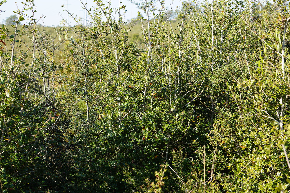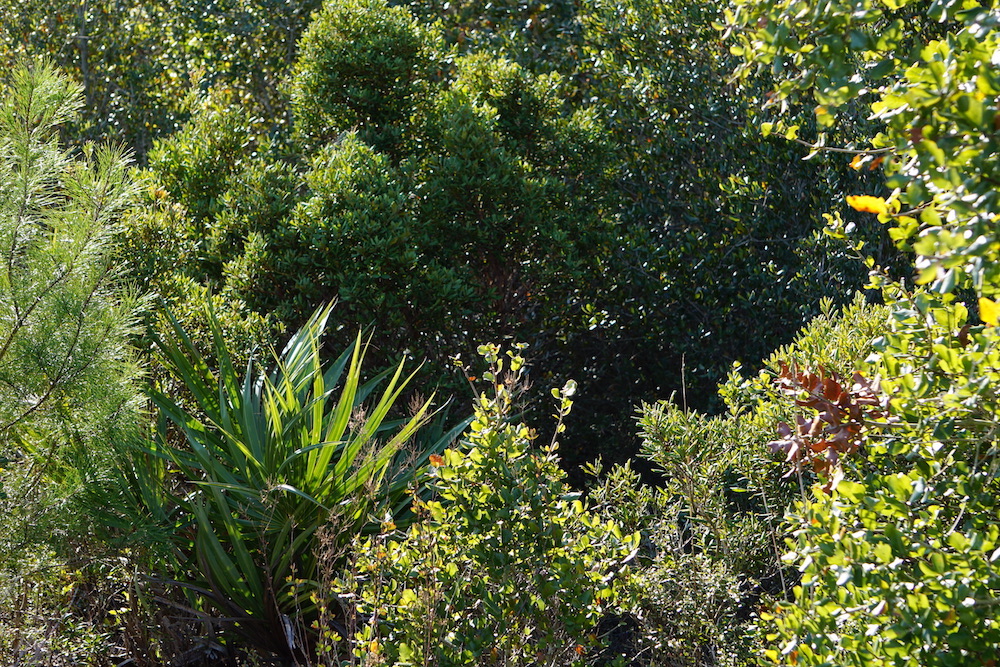 At least 173 species of birds have learned to thrive in the low scrub forest. They are not exotic birds. In fact, many of them are seen regularly at our feeders, such as mockingbirds, towhees, and catbirds. However, in the scrub forest, they stay on the ground or on the low branches, deep within the impenetrable scrub where they are safe from most predators. Birds tend to fly out of the scrub to catch a flying insect and then disappear immediately back into it. It makes for hard, difficult birding.