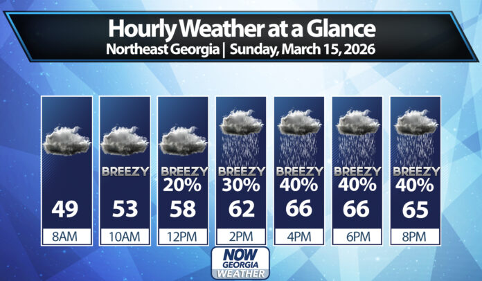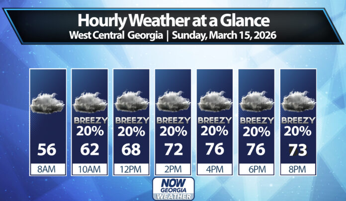 The Storm Prediction Center has placed all of North and Central Georgia under a slight (level 2/5) risk for severe storms on Sunday night. An enhanced risk (level 3/5) is in place to our west where storms are expected earlier in the day on Sunday.
