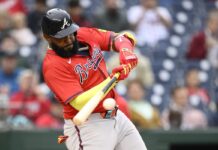 Ozuna’s three-run homer in the fifth inning gave the Braves their first lead at 5-4. It traveled 416 feet to left to cap a four-run inning.