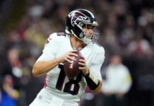 Ohio State guard Donovan Jackson was selected by the Minnesota Vikings with the 24th pick. After Dart went to New York, the Falcons moved back into the first round and grabbed Tennessee edge rusher James Pearce Jr. at No. 26.