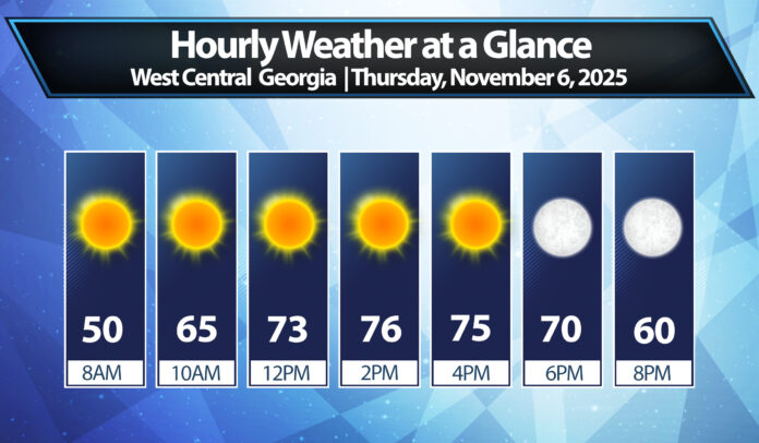 Daily Forecast By Tyler Penland - November 5, 2025 FacebookTwitterEmailPrint Sunshine and the mid/upper-70s? What more can you ask for in early November? Print Article