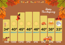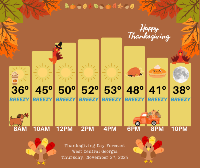 Daily Forecast By Tyler Penland - November 26, 2025 FacebookTwitterEmailPrint Happy Thanksgiving! Today will be quite chilly and feel much more like late fall. Winds will be gusty at 15-20MPH all day. Print Article