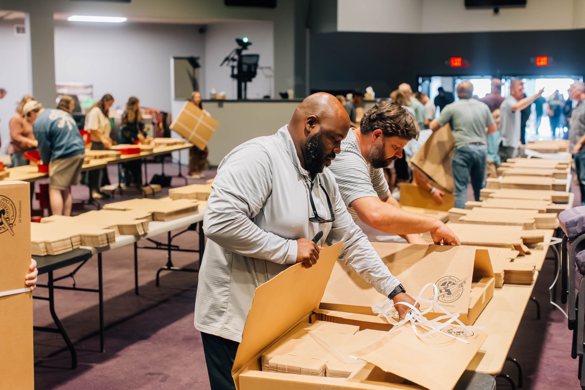 During the three-day packing event, volunteers of all ages from all over the community filled the church sanctuary—temporarily converting it into a buzzing assembly line. “It was like a factory,” the pastors recalled. “Everyone had a role.”
