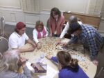 Volunteers and shelter guests gather for meals and social activities in the First Baptist Church of Cornelia fellowship hall. Here, they puzzle over a...