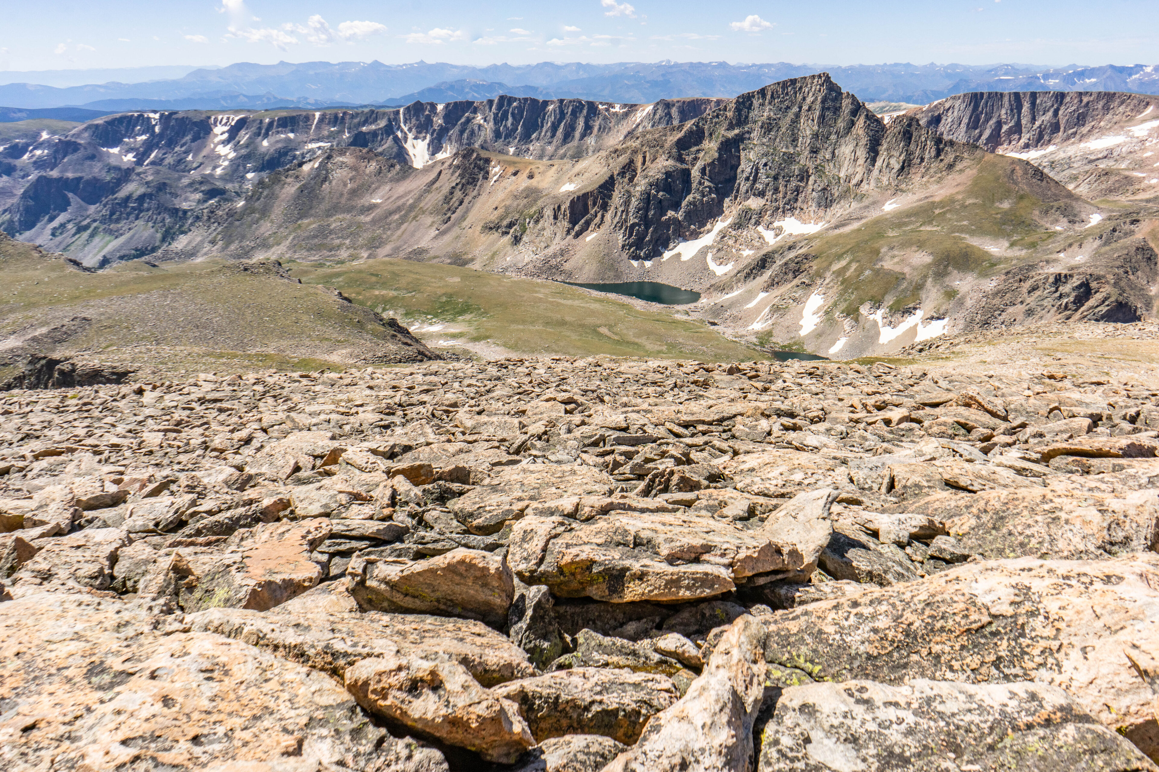 The view looking back towards our route from the summit reveals the expanse of boulders we just came through, though it lacks the scale of just how big they are. The lyrics from one of my favorite Jimmy Buffett songs came through perfectly clear in my worn out brain: