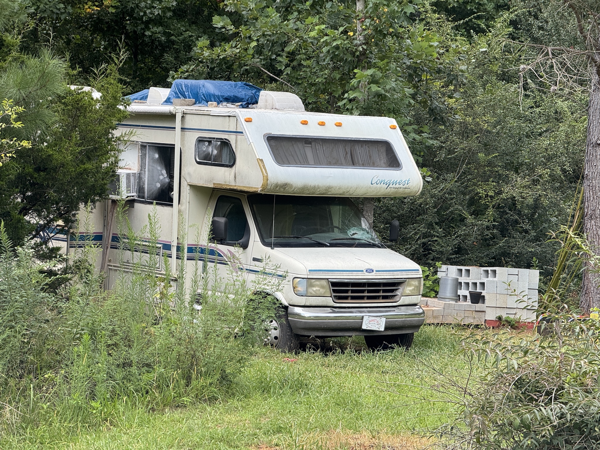 Camper on Canterberry Trail, where the stabbing suspect barricaded himself after the attack. Authorities used less-lethal weapons to remove him from the camper and take him into custody. (Joy Purcell/NowHabersham.com)