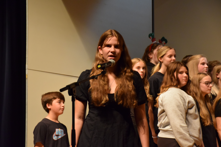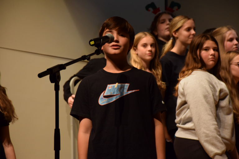 The evening concluded with a festive twist as the chorus students performed the playful “You’re a Mean One, Mr. Grinch,” featuring seventh-grade student Jaysee Chambers as the Grinch. Soloists Noah Barron and Jaycee McCollum added their voices to the whimsical holiday favorite.