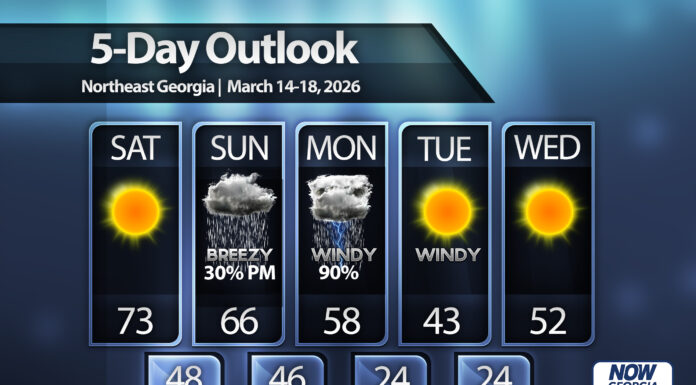 A major front will bring strong storms to the region on Sunday night into Monday with a much colder airmass behind the storms. SATURDAY: HAPPY...