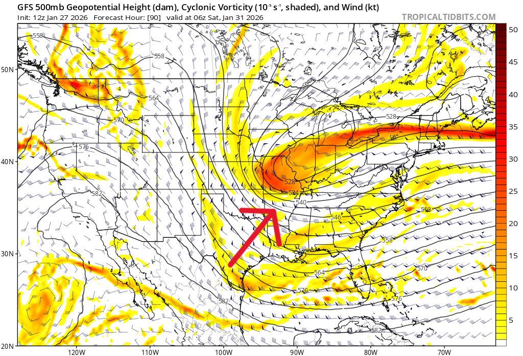 What we are dealing with this time is a strong upper level system diving out of Canada. This bears some resemblance to the storm that brought light snow to central Georgia a couple weeks ago, but the overall set-up isn’t exactly the same.