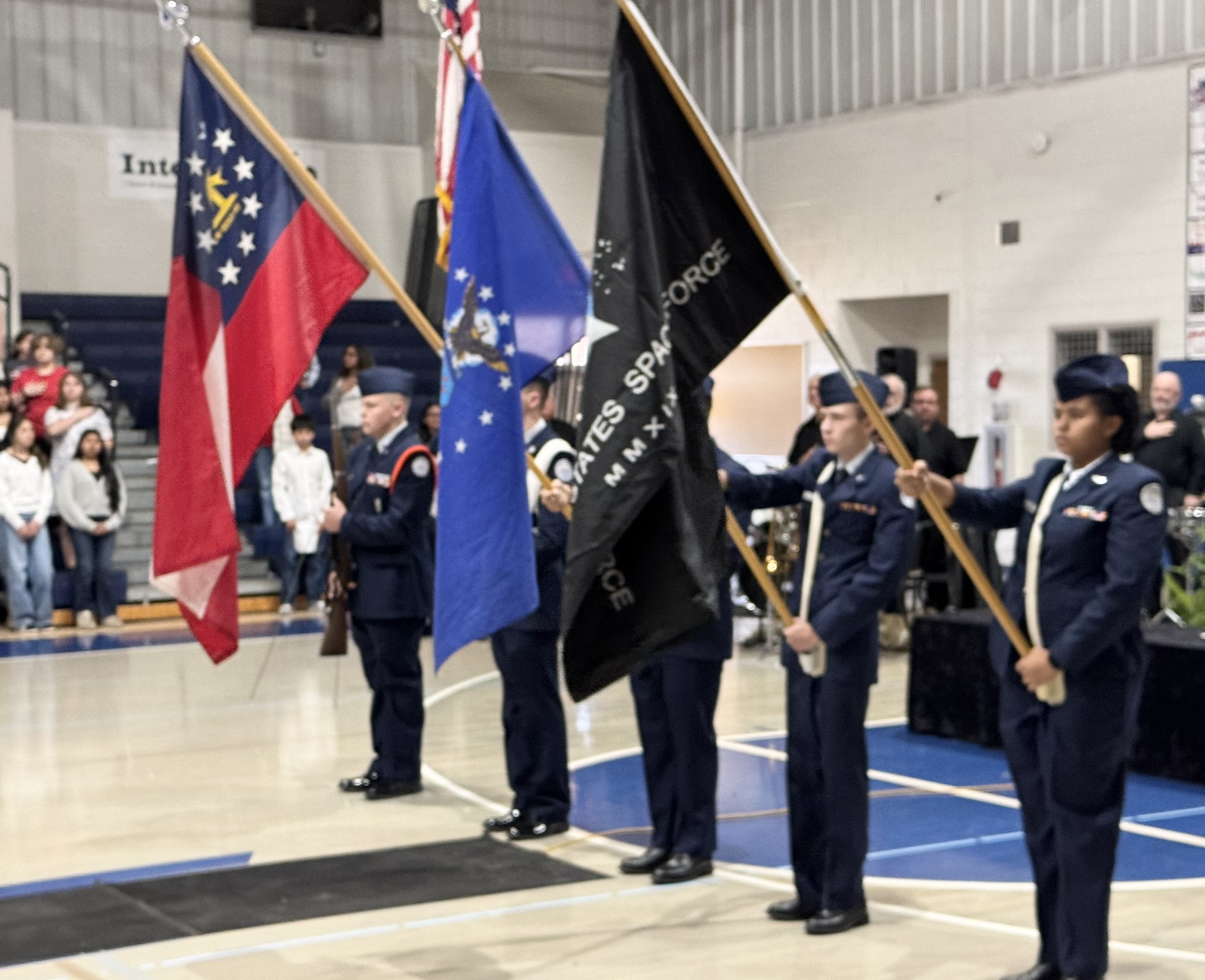 Performances by the Wilbanks Middle School Chorus included patriotic selections such as “Veterans Day Hallelujah,” “Til the Last Shot’s Fired” and “America the Beautiful.” The program also featured a moment of silence and a special recognition of attending service members.