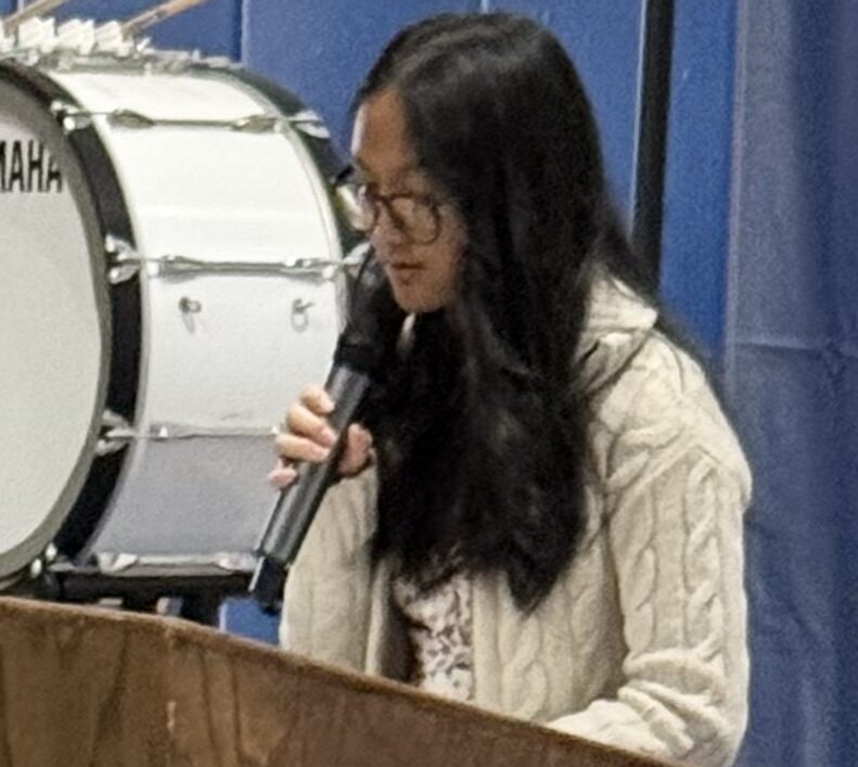 Among the highlights of the program was an essay read by eighth grader Khamla Laosalie,