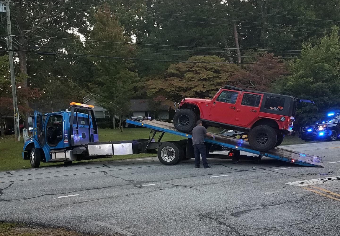 The two vehicle accident involved a Jeep Wrangler and a Ford Escape. Both vehicles were traveling towards GA 115 when the Jeep attempted a right turn onto Amy’s Road. The Ford attempted to avoid the Jeep but made contact with the rear of the Jeep with its right front. The Jeep left the roadway causing it to flip on its side and coming to rest at the corner of Amy’s Road. The Ford came to rest in the adjacent yard.