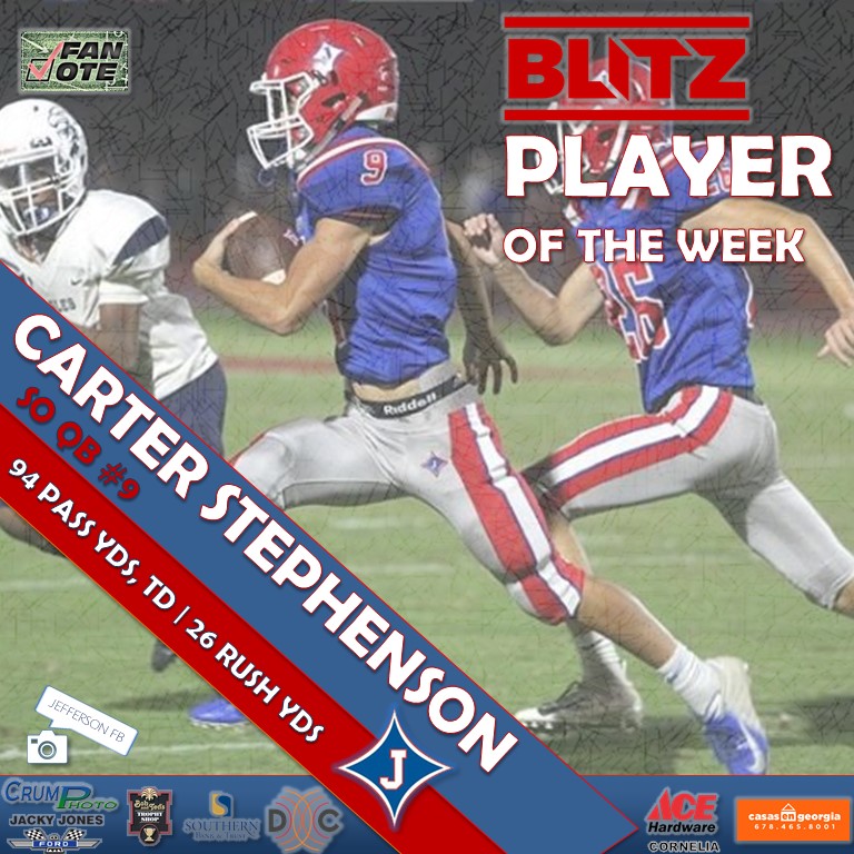Talk about coming up clutch when your team needs you the most. With Jefferson junior QB Colby Clark out with injury, sophomore Carter Stephenson rose to the occasion and is rewarded with the Fan Vote Player of the Week. He’s joined by BLITZ Players of the Week Luke Smith and Tracey Lowery.