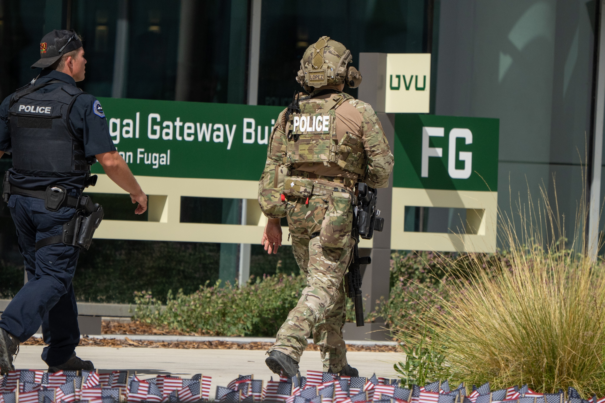 Investigators at the FBI and Utah Valley University reviewed surveillance footage from the university and identified Robinson arriving on campus in a gray Dodge Challenger at about 8:30 a.m. on Wednesday.