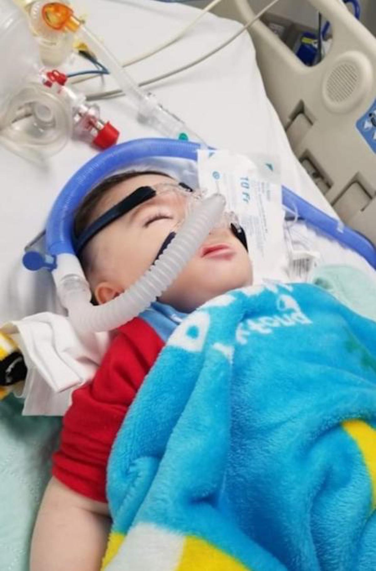 Darryl Macy snuggles up to his grandson, Colby. The 23-month-old has been in and out of hospitals since he was born. He’s now back in intensive care.