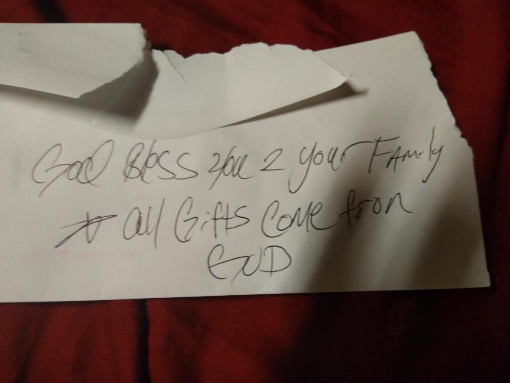 The envelope was addressed to Norton Mountain Insurance in Cleveland. On the outside was a handwritten note that read, “God Bless You. 2 Your Family. All Gifts Come from God.” On the inside was a handful of crisp fifty and hundred dollar bills.