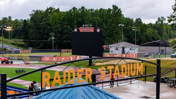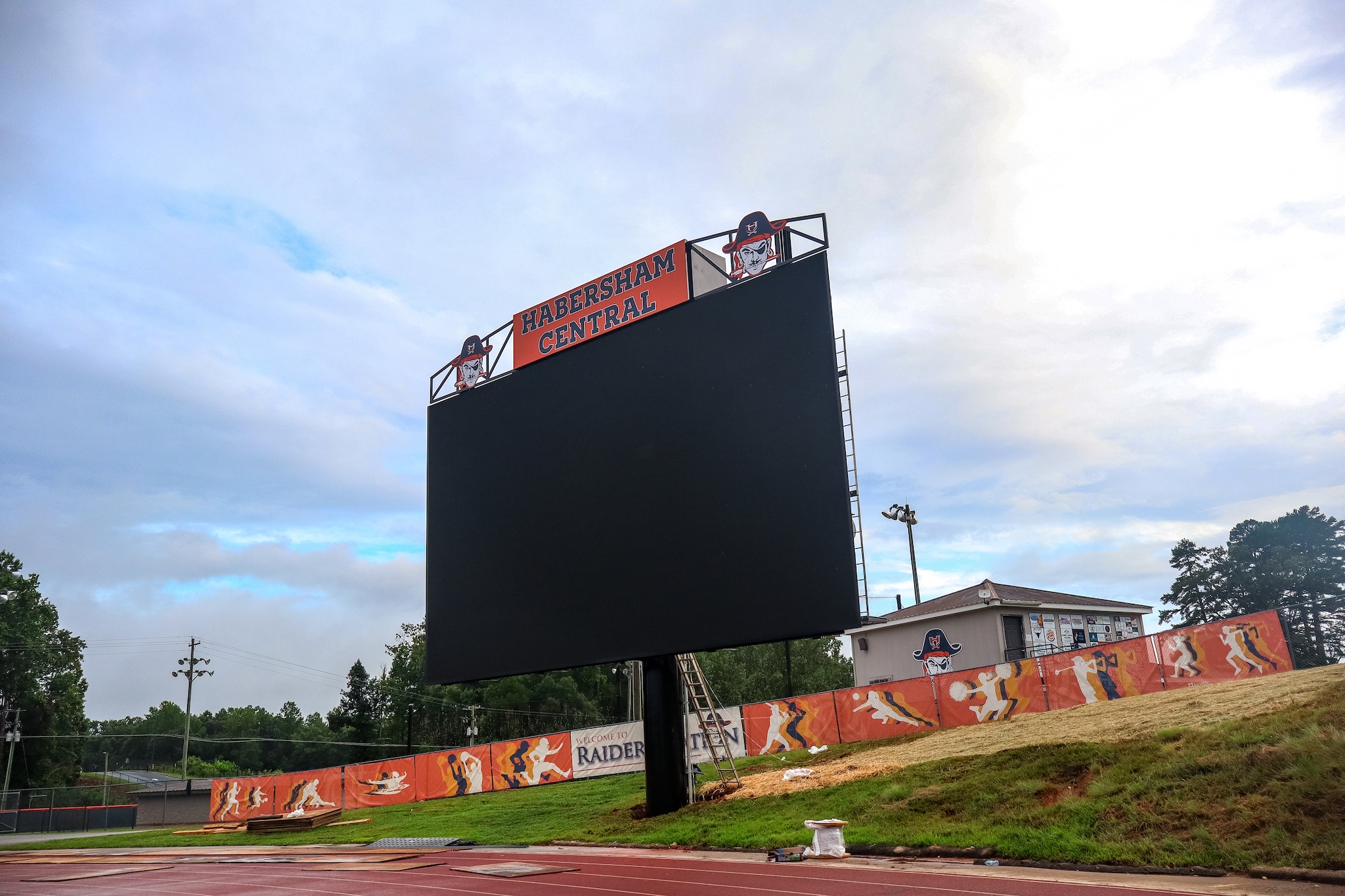 The Habersham County School District has installed a massive LED screen at Raider Stadium. The $465,000 video display is nearly two stories tall and spans over 1,000 square feet. It was installed over the weekend on the west side of the stadium between the football and softball fields.