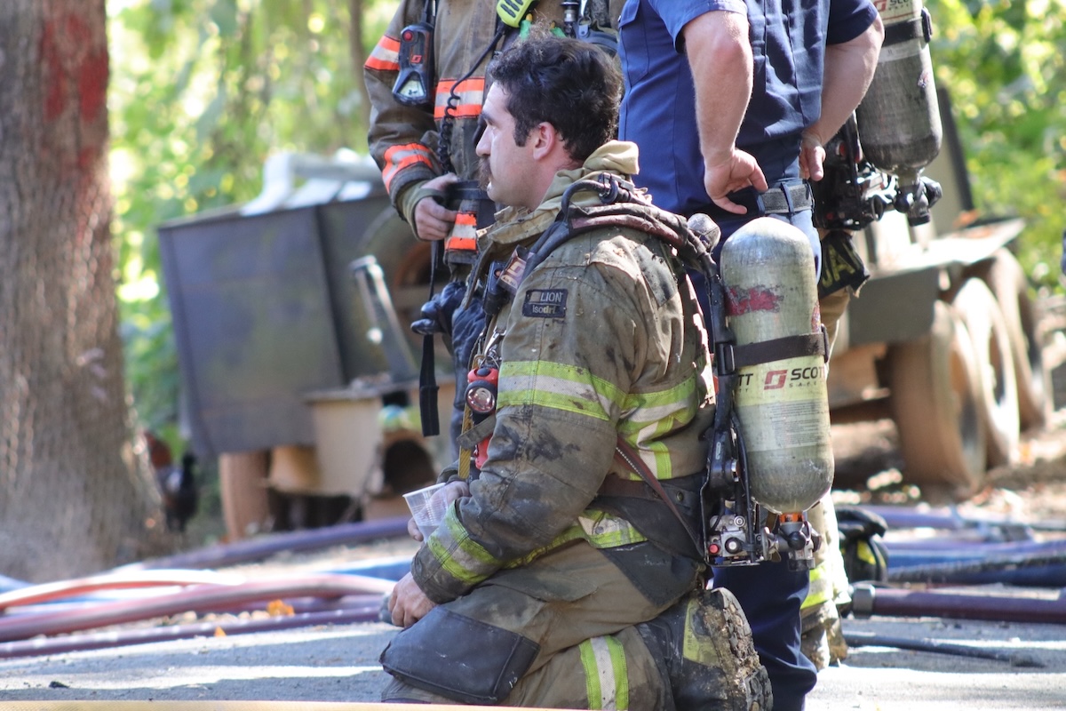 Firefighters from Hall County and Gainesville responded to the house fire on the 1000 block of Jordan Drive around 2:20 p.m. on Oct. 16. When they arrived, the single-family home with a basement was fully engulfed in flames, says Hall County Fire Rescue Public Information Officer Kimberlie Ledsinger.