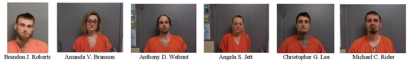 Deputies arrested four Lumpkin County residents: Brandon Joshua Roberts, age 31; Amanda Victoria Brannon, 24; Anthony Dustin Wehunt, 34; and Angela Samantha Jett, 49. They also took into custody 29-year-old Christopher Gage Lee of Dawson County 35-year-old Michael Carlton Rider of Hall County.