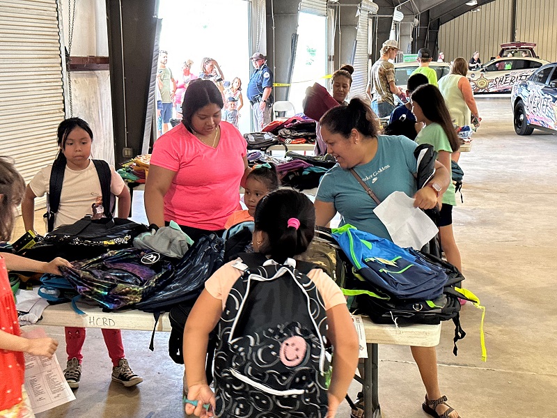 Families lined up in the hot sun 30 minutes early on Tuesday at the fairgrounds to ensure their students received school supplies from the Habersham County Sheriff’s Office.
