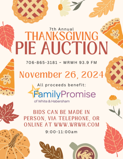 Family Promise of White and Habersham sponsors this Thanksgiving Pie Auction each year as a fundraiser.