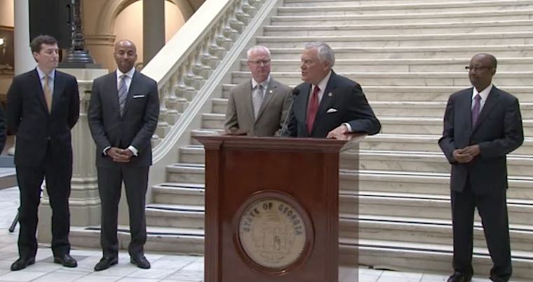 Gov. Nathan Deal, along with Georgia Department of Transportation (GDOT) Commissioner Russell McMurry and State Transportation Board Chairman Robert L. Brown Jr., announce the reopening of I-85, six weeks after a March 30 fire and bridge collapse closed the corridor.