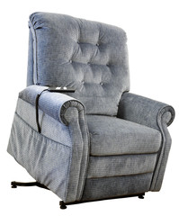 The chair is a kind of recliner, but it includes a mechanism that pushes the chair up from its base and slowly moves the sitting person into a standing position. Henry does not have to struggle to get to his feet.