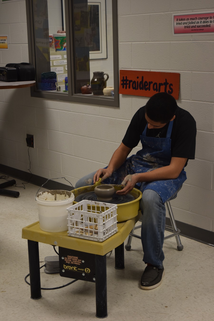 Custommade jewelry was on sale in the PAC Lobby and students Megan Hutchinson and Kyra Shalikashvili presented the work that is currently in their AP Art portfolios in Dr. Kerr’s Art Room. In Jill Gallagher’s room there was a photography display and wheel throwing demonstrations. And an art installation was there for guests to enjoy. In other area of the school the Drama Department’s one act production of Cagebirds captured the audiences’ attention.
