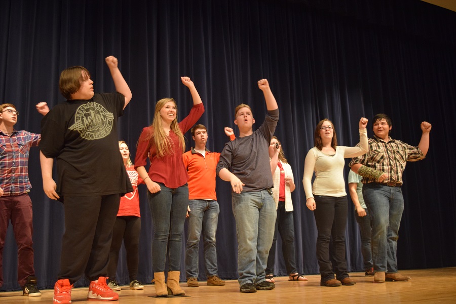 The evening kicked off in rousing fashion with the high school cast of the spring musical Footloose performing one of their show-stopping numbers. The show is now in rehearsal, under the watchful eye of drama teacher Jeremy Bishop. Bishop was on hand Tuesday to welcome those gathered.