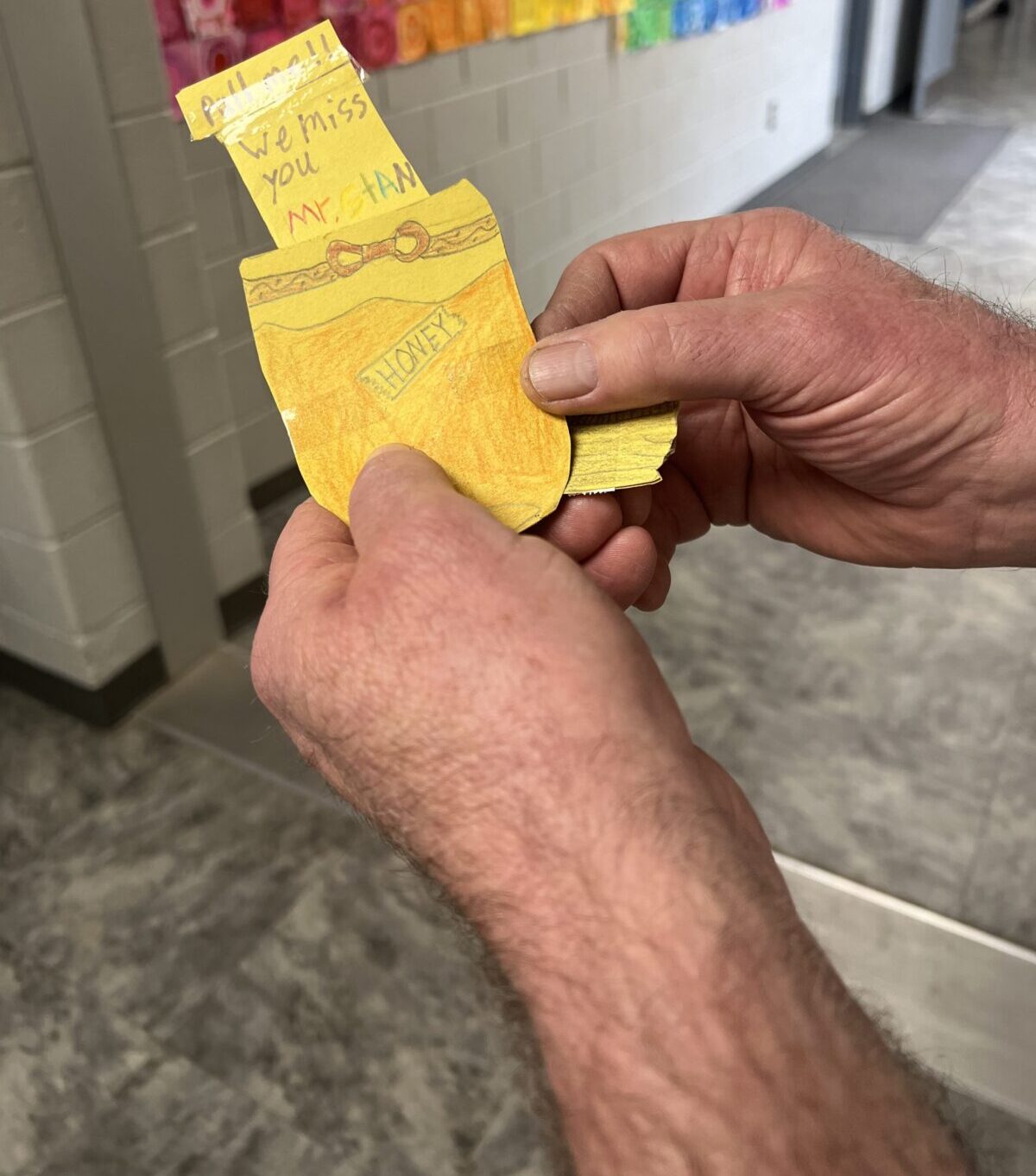 Stan’s signature touch was his stickers. He would give children a sticker throughout the day, and in return, the students often gave him pictures, which he proudly displayed on the school’s trash cans.