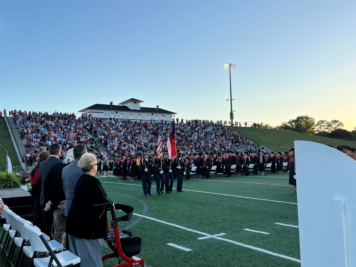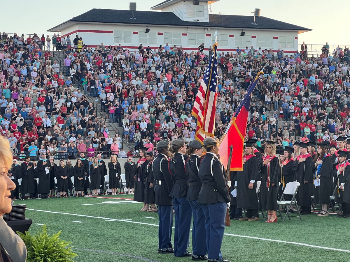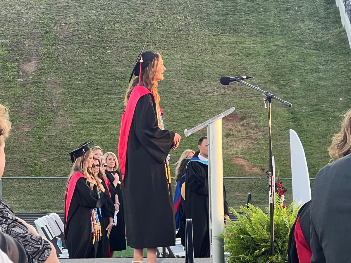 The evening opened with a stirring performance of the National Anthem by senior Audrey Grace Johnson, whose voice set a tone of pride and unity for the occasion. The stadium was filled with proud families, cheering friends, and smiling graduates ready to step into their next chapter.