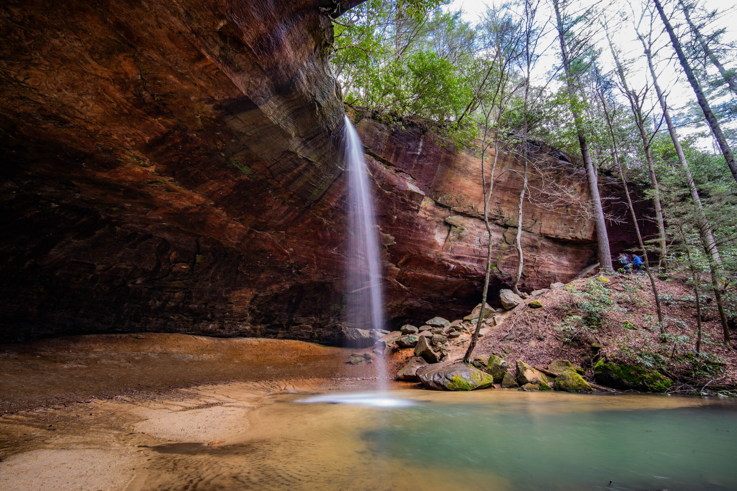 The falls pour over a large sandstone outcrop that forms a large cave behind them. This leaves plenty of room to walk behind and get some very cool shots of the waterfall. There aren’t a ton of places you can do this on the East Coast and each one is special.