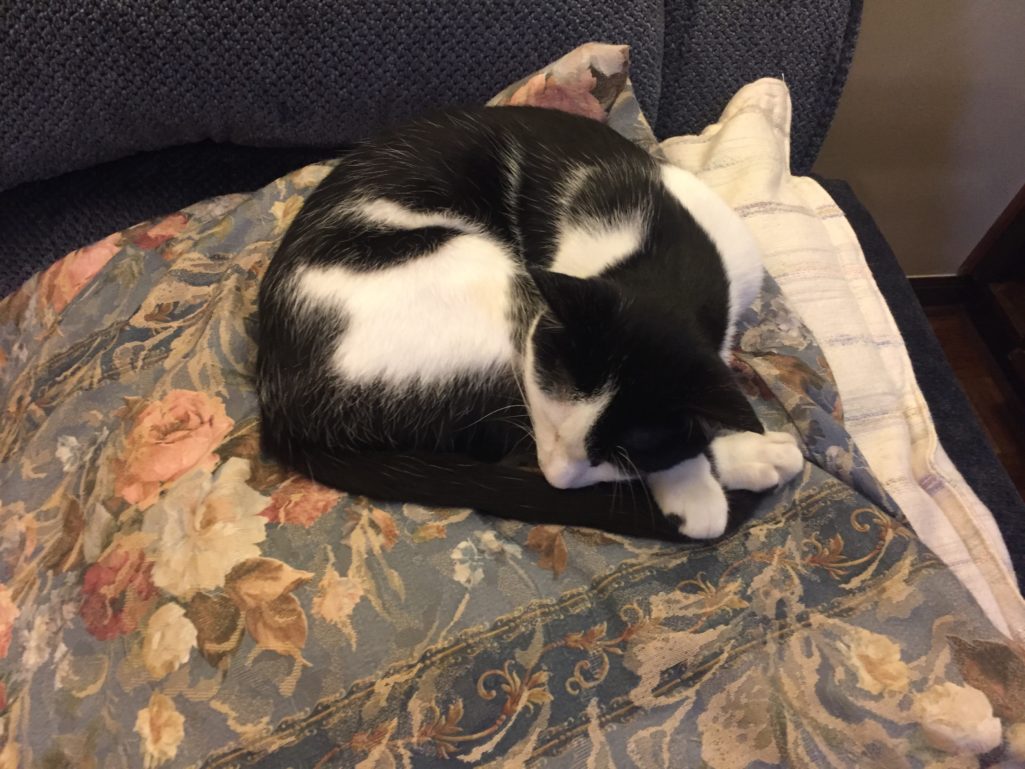 Dishie spends his days napping and cuddling with Palazesi, enjoying his fashionable assortment of bowties and watching his person play Animal Crossing.