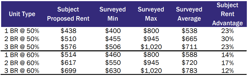 The development has two different types of rent, the units at 50 percent of the Habersham area median income (AMI) will account for 15 of the units, while the units at 60 percent of the AMI will make up the remaining 57.
