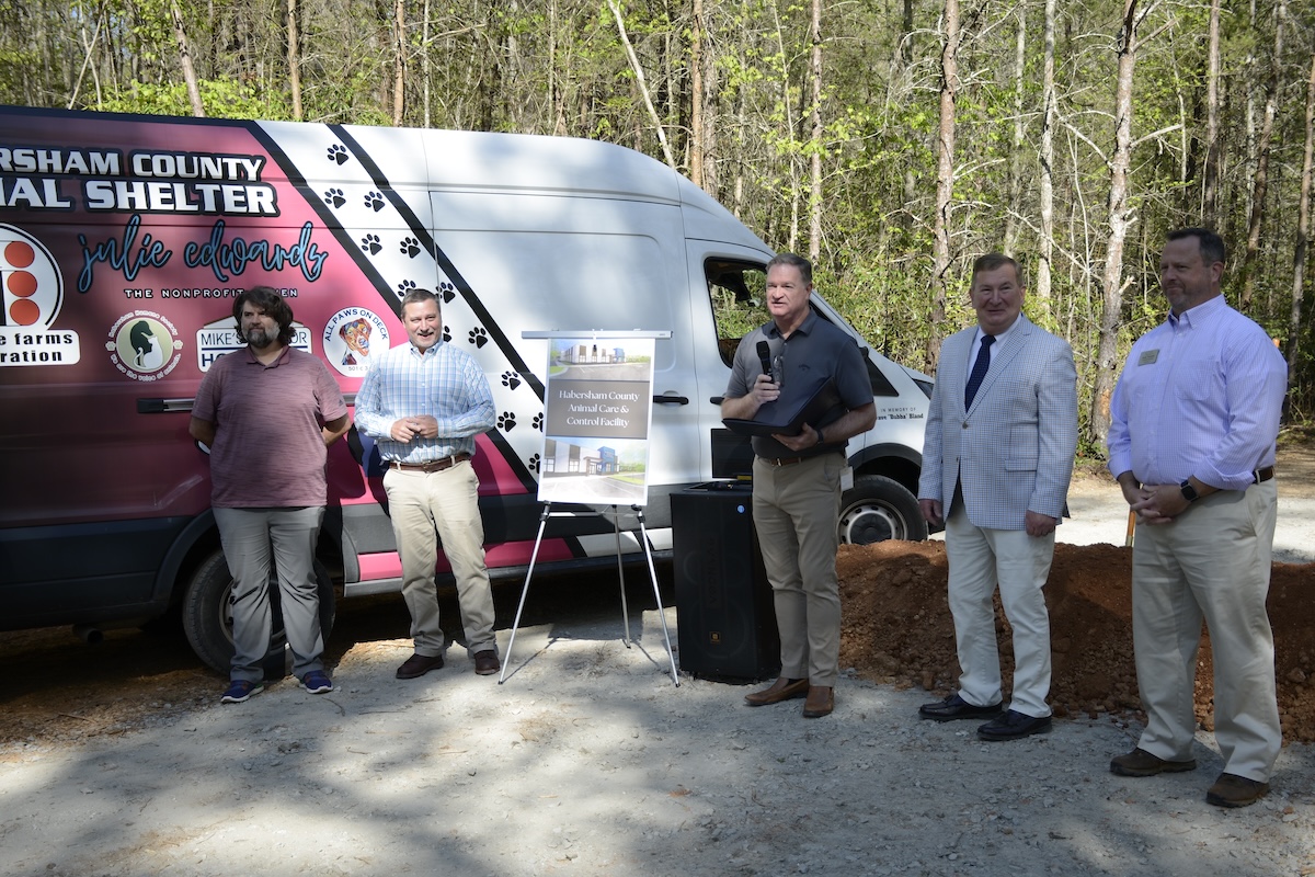 Under perfect azure skies, Habersham County took a big pawprint forward on Thursday morning, April 17, as county officials broke ground for the long-awaited county animal shelter in Cornelia. The new facility will double the current shelter’s cramped space for dogs, cats, and other domestic animals.