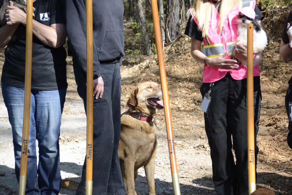 A hefty mixed-breed adult dog named Harvey, tail whipping the wind, is now, at five years old, the shelter’s longest-term canine resident. He has lived at the shelter for two years. Harvey was among the 40 or so happy officials, volunteers, county staff, animal lovers, dogs, cats, and birds at the groundbreaking off Old Athens Highway near South Habersham Middle School.