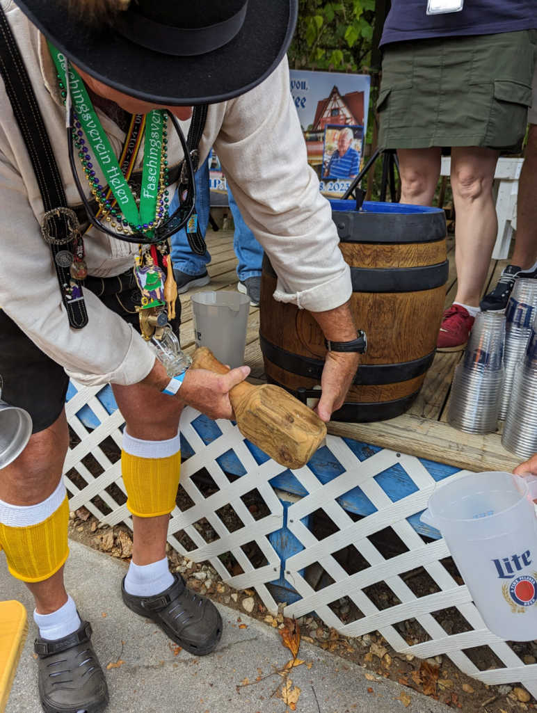 The ceremonial tapping of the first keg at the Fussen Biergarten at the Helen Festhalle kicks off the official beginning of festivities for the 2023 Oktoberfest. (Chris Smith photo posted on Helen Chamber of Commerce Facebook page)