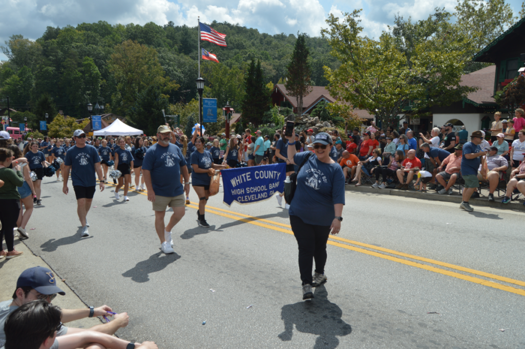 The White County High School Warrior Marching Band wraps up the Oktoberfest parade on Saturday, Sept. 9, 2023. (Jerry Neace/NowHabersham.com)