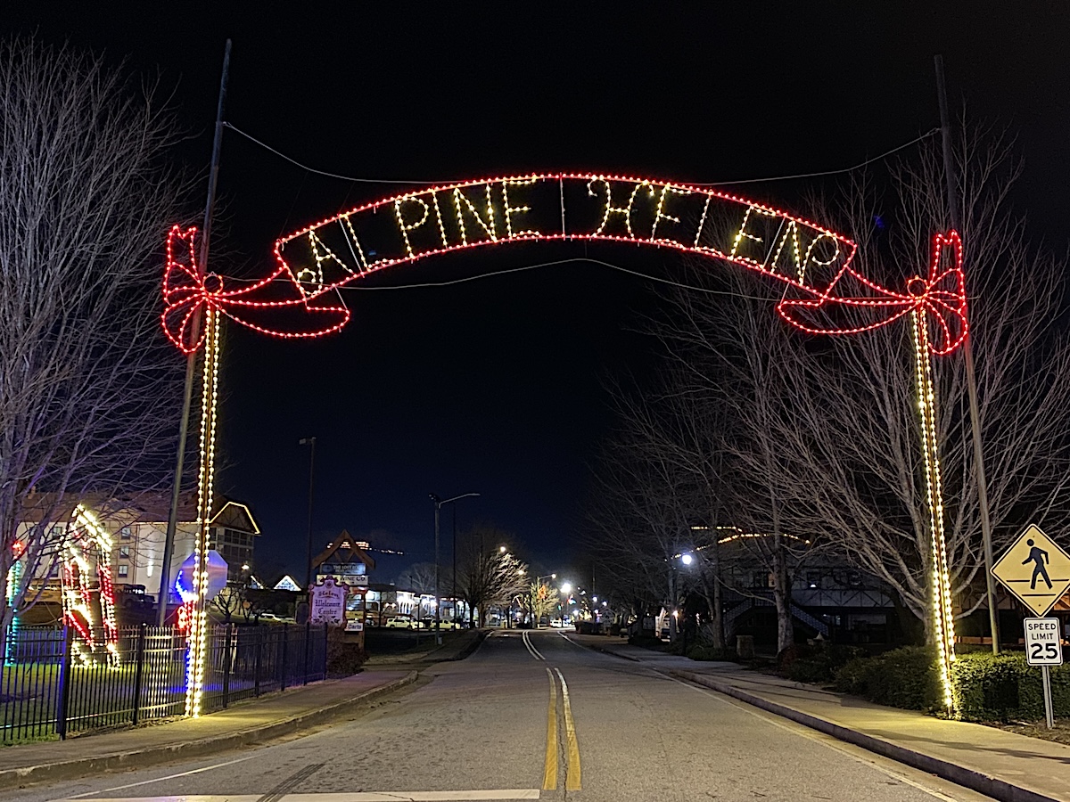Christmas lights in Helen, Georgia, Dec. 19, 2020. (Joy Purcell/NowHabersham.com)