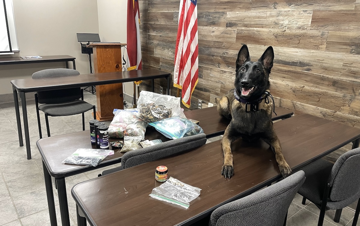 Around 7:30 p.m. on Oct. 30, a White County Sheriff’s Office deputy stopped a pickup truck for speeding on the Helen Highway just north of the Appalachian Parkway. During the traffic stop, the deputy reported smelling a strong odor of marijuana coming from the vehicle. A White County K9 unit was requested, and K9 Jelly alerted on the vehicle.