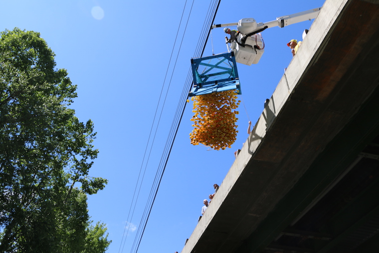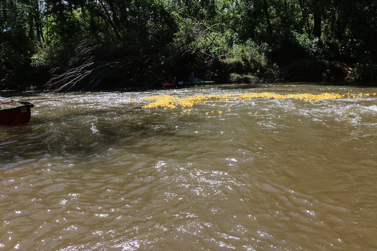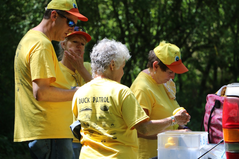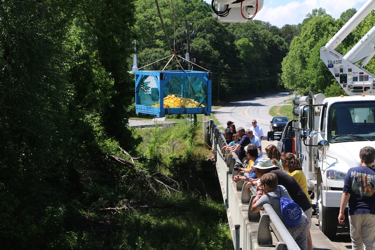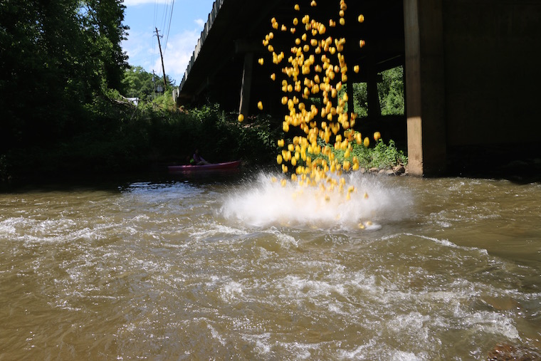 On Saturday, May 21, 2016 more than 1,000 yellow rubber ducks floated down the Soque River in a race to raise money for literacy. Each duck was ‘adopted’ for $5 and the first three to finish won cash prizes for their adopted owners.