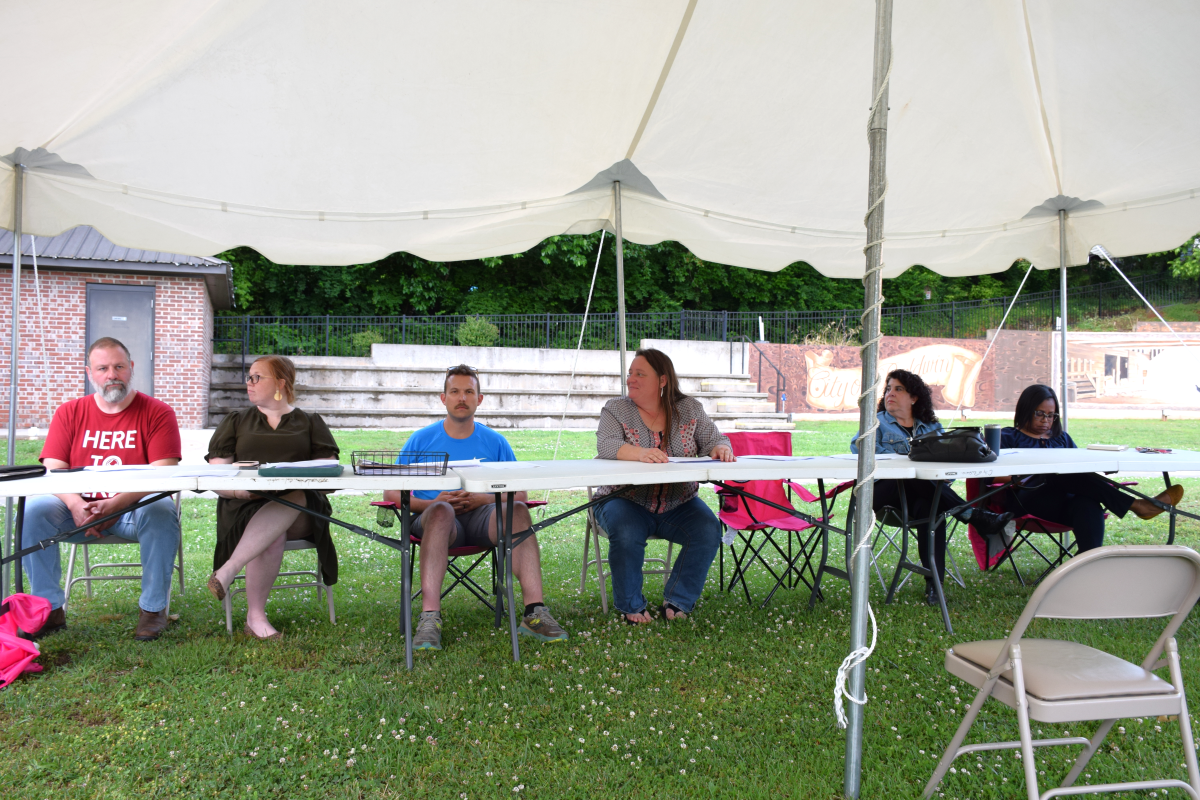 Baldwin held a budget town hall meeting Tuesday evening to present its projected budget for FY 2025. The meeting was held downtown under a tent in the Farmers Market where only two citizens attended.