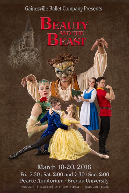 Step into a world of magic, mystery, and enchantment with The Gainesville Ballet Company’s, Beauty and the Beast, a classic story of an arrogant young prince turned Beast (David Morton/Mo Stringer), who seeks someone to break the spell he’s been placed under by an enchantress (Kara Celeste). Fall in ‘love with the beautiful Belle (Dory Hatchett/Meagan Wade) who agrees to live at the castle in exchange for the release of her father Maurice (Bill Buchanan). Only true love can change the Beast and all the castle members believe Belle just might be the one.