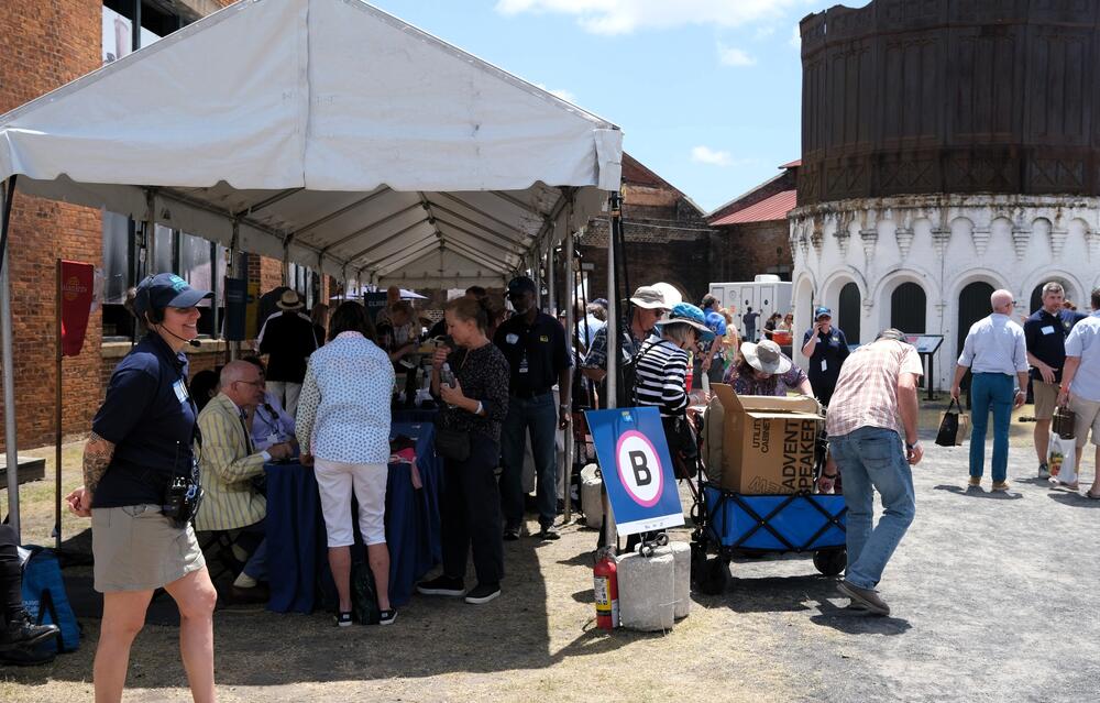 “I’m Stephanie; I just need to see your things so I can make sure you get to the right expert,” a volunteer told a pair of guests entering the tent, directing them with a map of the sprawling outdoor venue that houses an antebellum train repair shop.