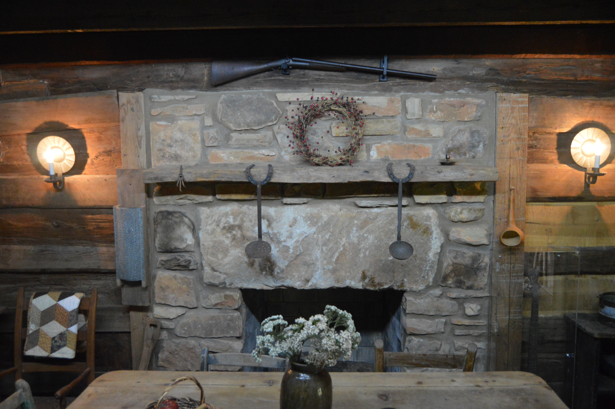 He described how English would have cut down the trees by hand using a five-pound felling ax – a typical tool of frontiersmen in his day. He spoke of how English would have carefully sharpened the ax and used it to limb, hew, and notch the beams. He then stacked and interlocked the beams on the cabin’s rock foundation. English chinked the logs with a mixture of mud, clay, and sawdust to seal the cabin from the elements.