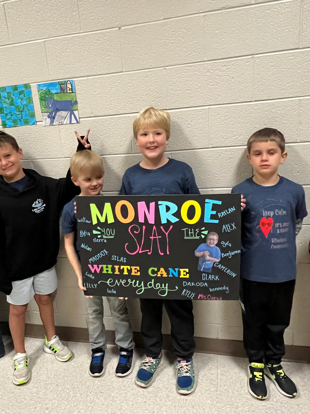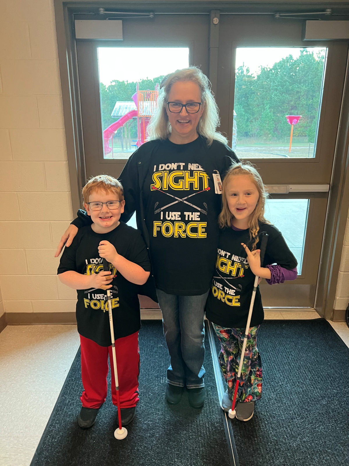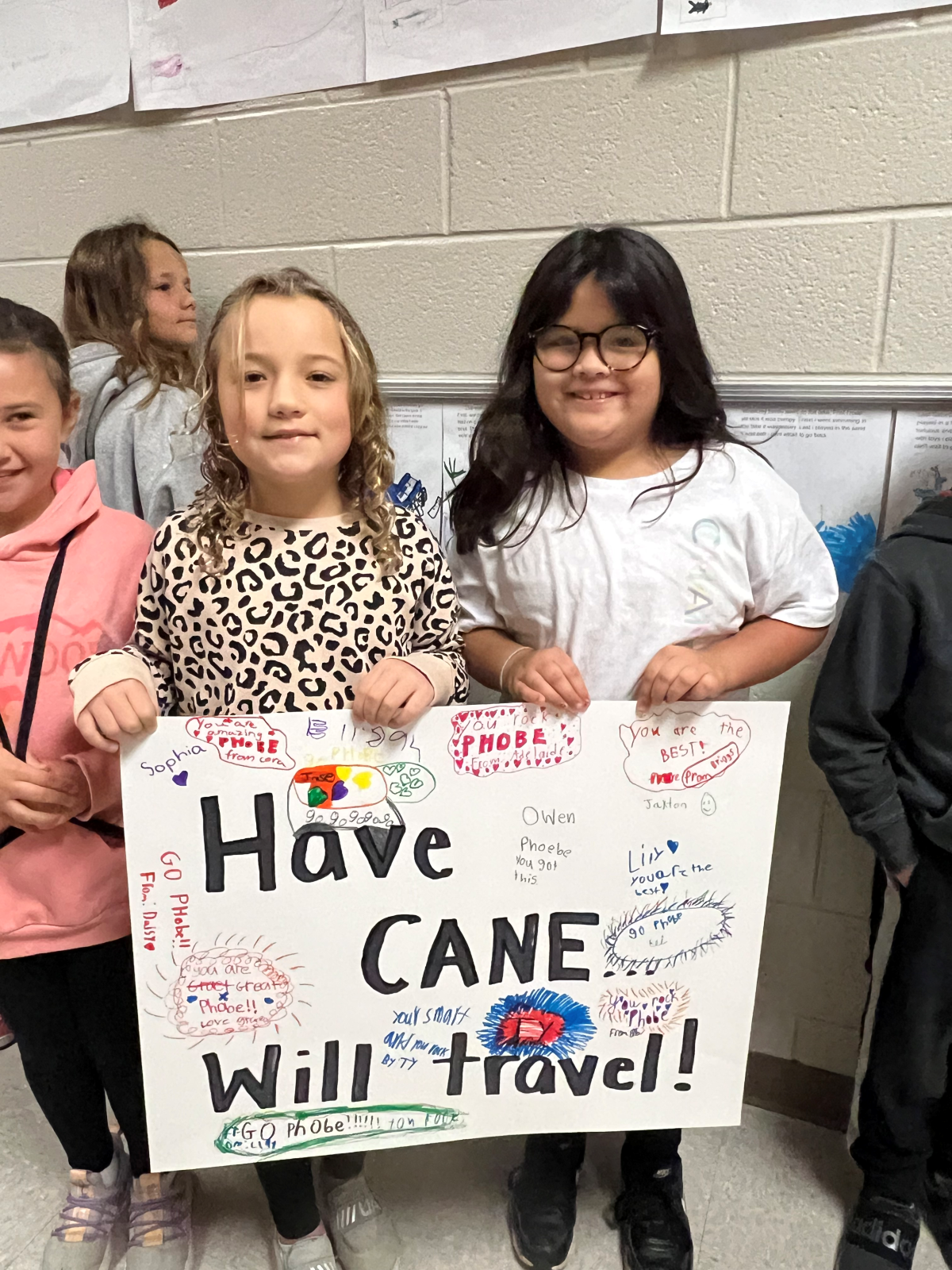 Since the parade coincided with White Cane Awareness Day, teacher Robin Skelton saw a perfect opportunity to build awareness and empathy. It also gave Phoebe and Monroe a chance to be recognized for their achievements, mastering a skill some students referred to as “cane power.”