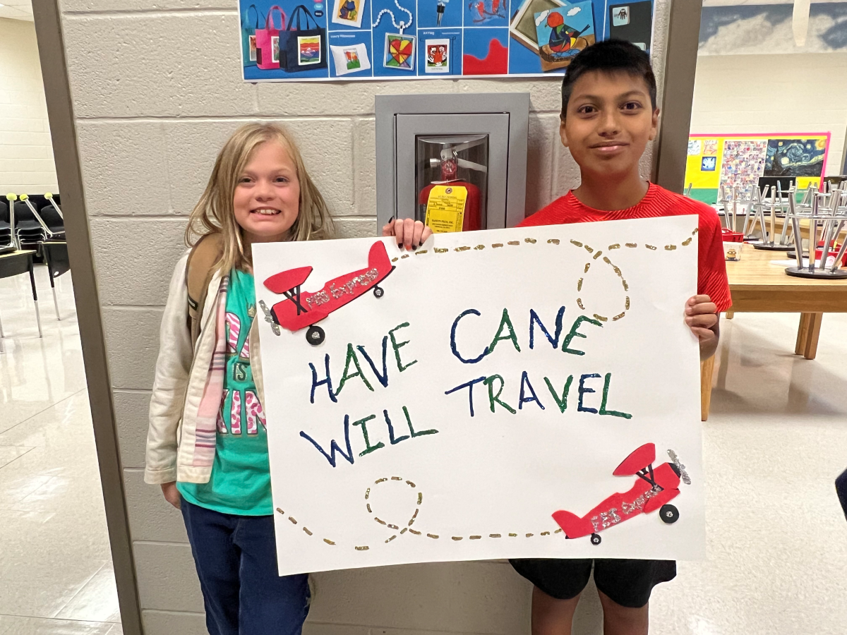 Phoebe Groves and Monroe Bogue are among five Habersham County students currently learning how to use canes to gain independence. They demonstrated their skills as they navigated the halls with other students who were being recognized for perfect attendance.