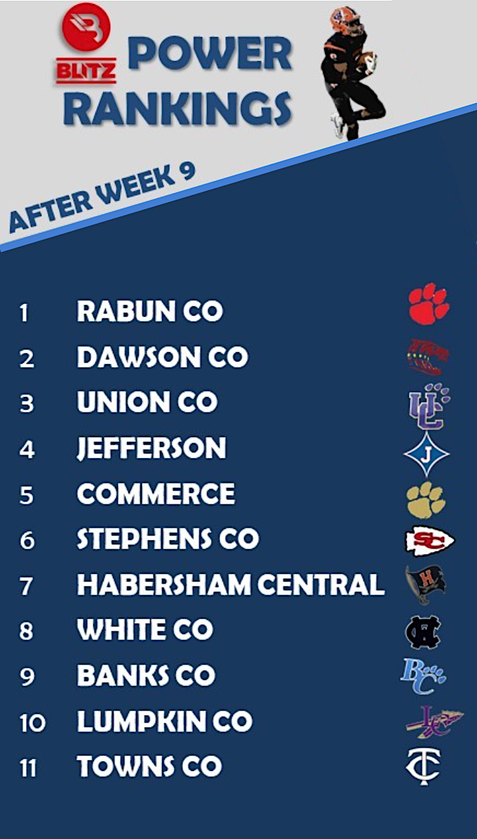 REASON(S): Like Union, Commerce is still unbeaten. The Tigers ran all over Towns County on the road, and close with RMA at home this week and a true region title crossover game on November 2.