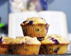 I’ve been waiting but no muffin man has delivered any muffins to my house so I think I’ll turn to my niece, Jennifer’s recipe for blueberry muffins. They are great for breakfast, lunch, a snack, or dessert. Plus, your kitchen will smell divine while they are baking!