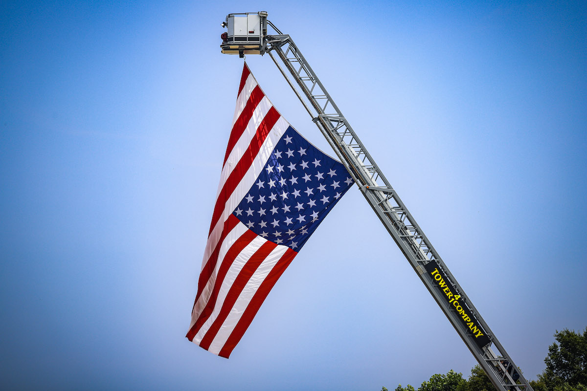 The Baldwin Fire Department suspended a massive American flag from its ladder truck over the Highway 441 Bypass. It waved in the breeze as the succession of three dozen vehicles escorting Alford’s body passed under it.